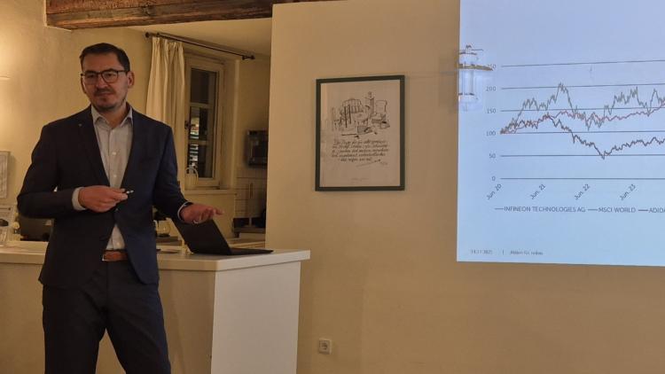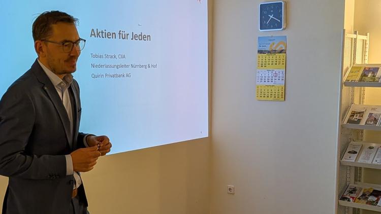 Im Anschluss führte Tobias Strack, Niederlassungsleiter Nürnberg/Hof der Quirin Privatbank AG, anhand von zehn Prinzipien durch die Welt der Aktienanlagen. Von den Grundlagen des Kaufkraftverlustes durch Inflation über die Bedeutung der Diversifikation bis hin zu alternativen Investments vermittelte er einen fundierten Überblick.